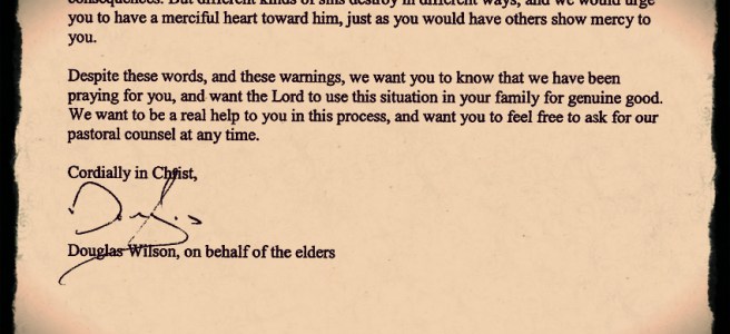 Doug Wilson’s Shaming Letter to the Father of an Abuse Survivor